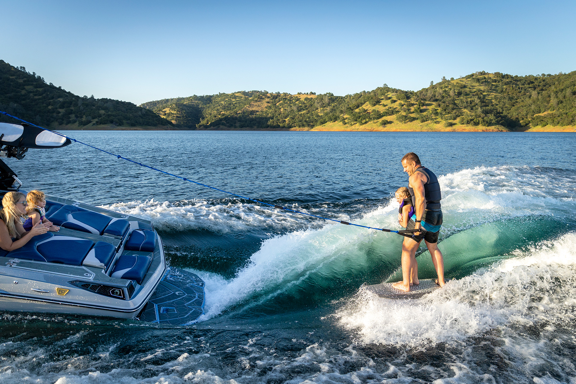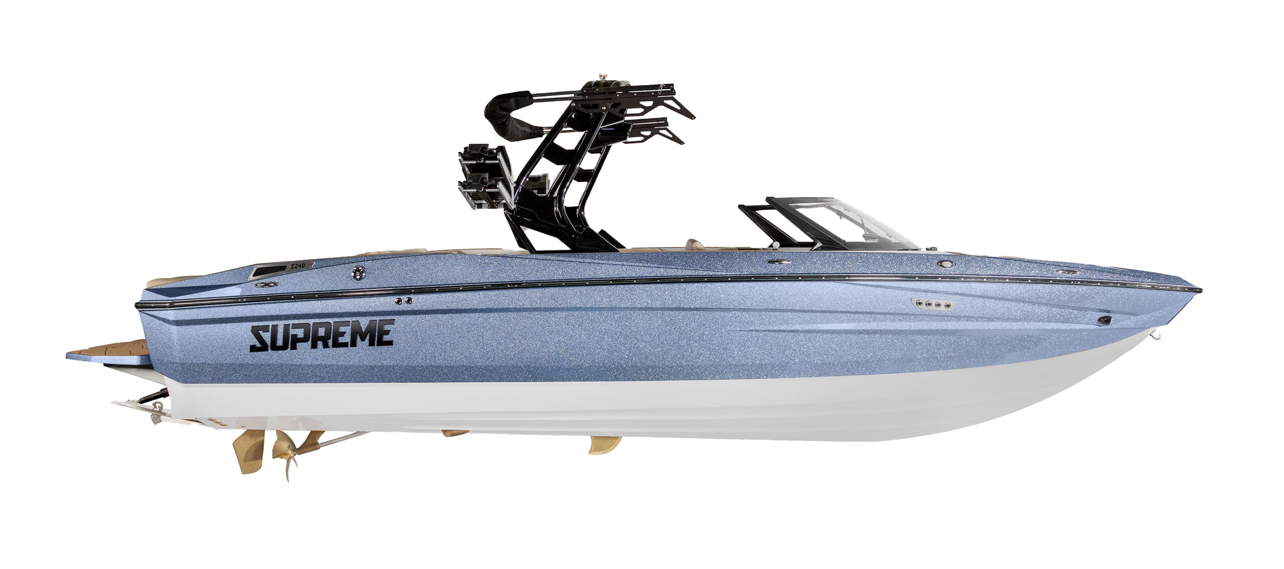 The 24-foot Supreme S240 seats up to 16 and delivers premium surf performance at a practical price. With up to 4,800 lbs of ballast, fast-fill technology, and EZ-V Hull stability, it produces long, powerful waves ideal for both new and experienced wakesurfers.Relax